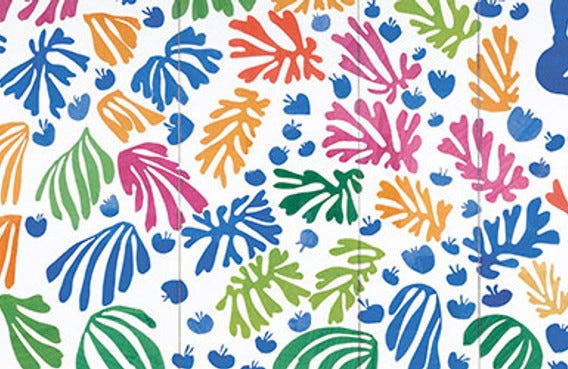 Exercise: Try your hand at cut-outs! Collect some magazine clippings, colored paper, a gluestick, and scissors, and create your Matisse-inspired cut-out work! This would be a great activity with friends and children or on a rainy Sunday for some alone time.
