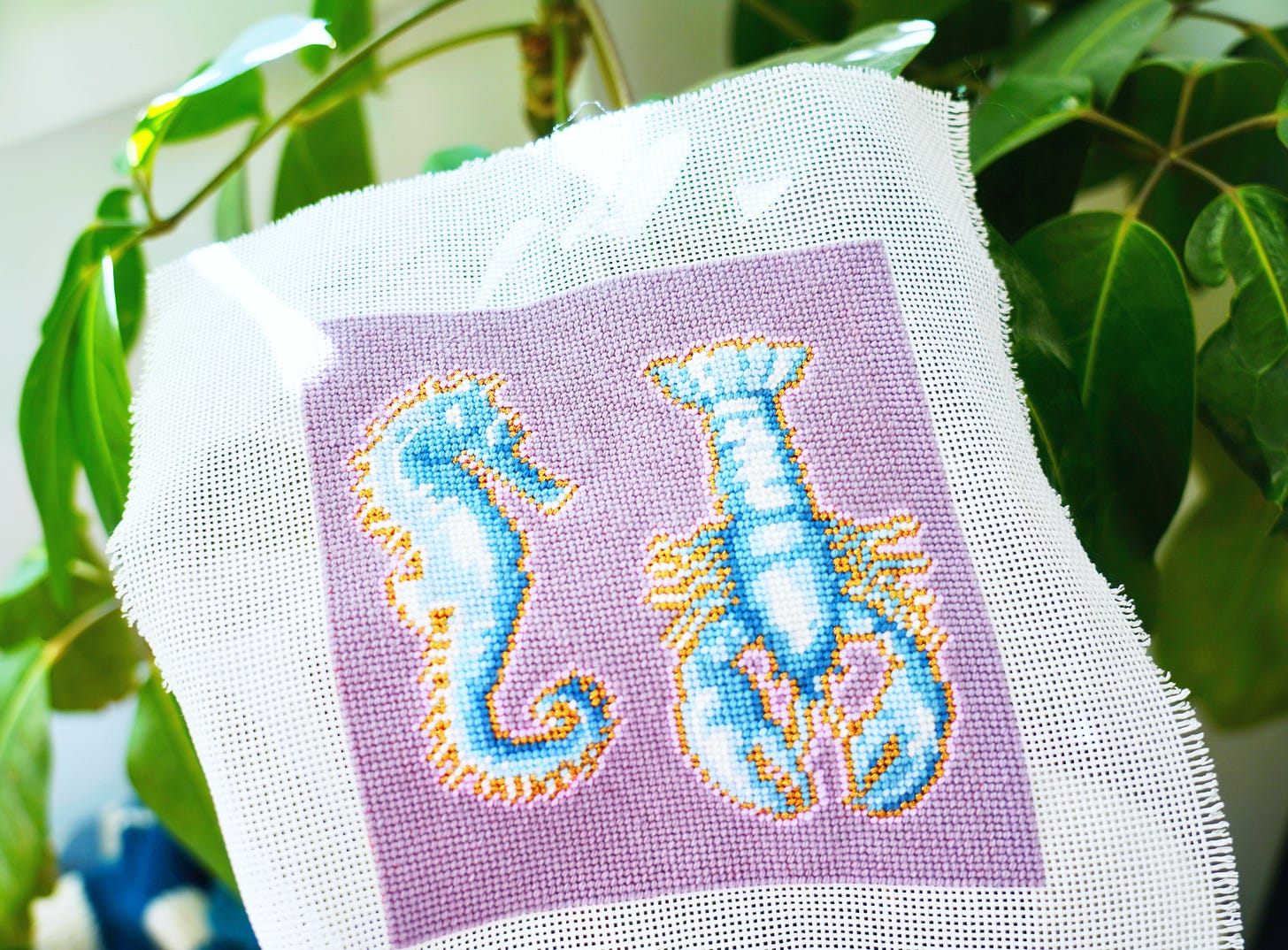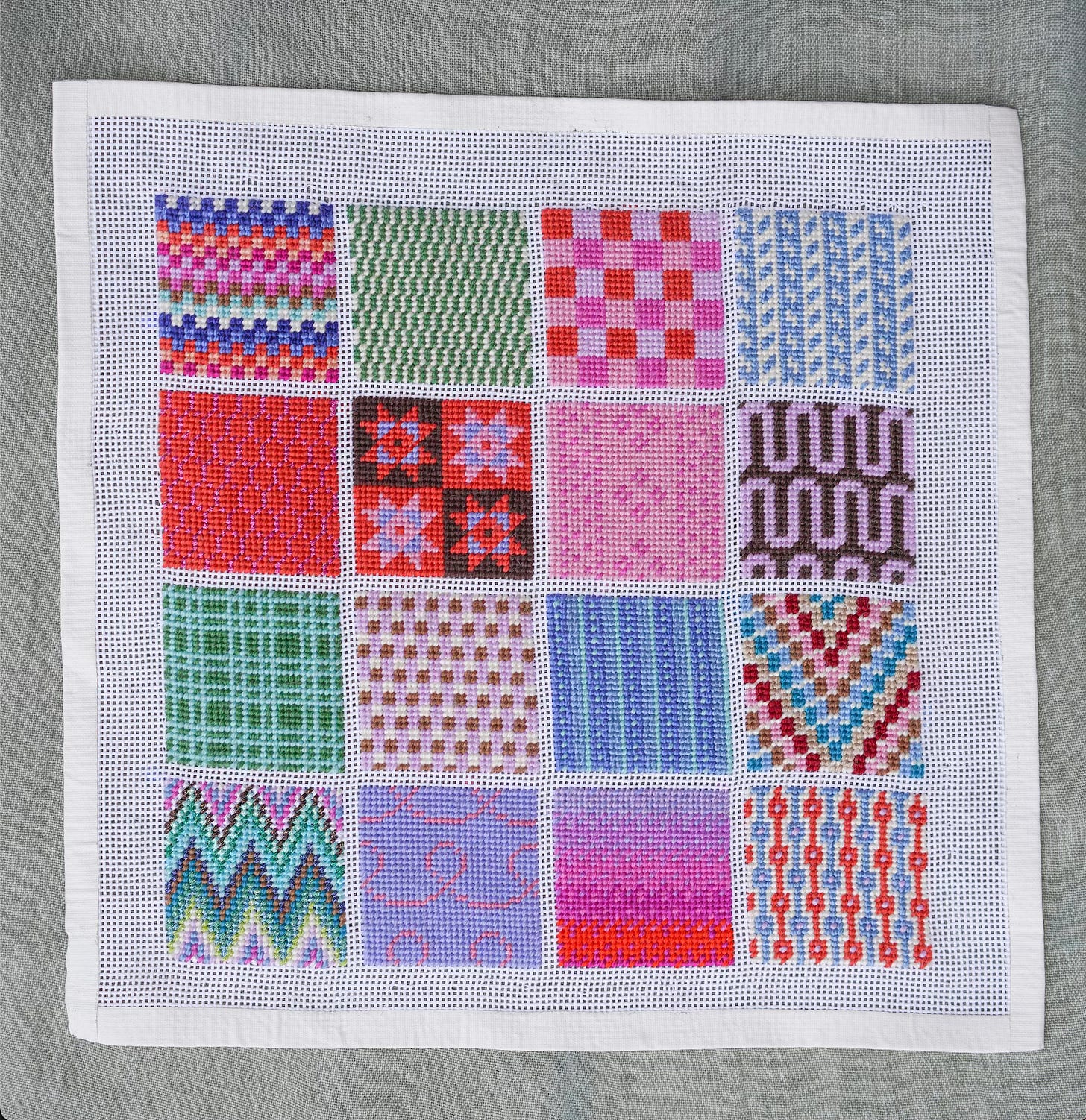 That said, not every bit of painted canvas needs to be completely hidden. Sometimes what peeks through between stitches becomes part of the work’s character, adding an unexpected twist to the finished piece. A little dappling if you will.