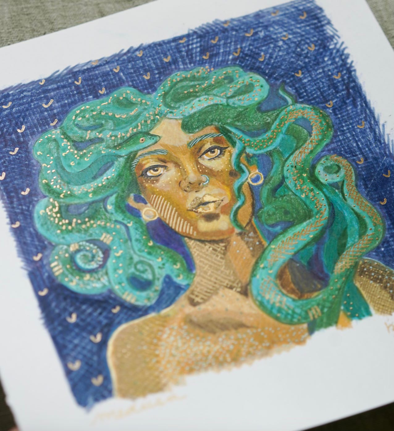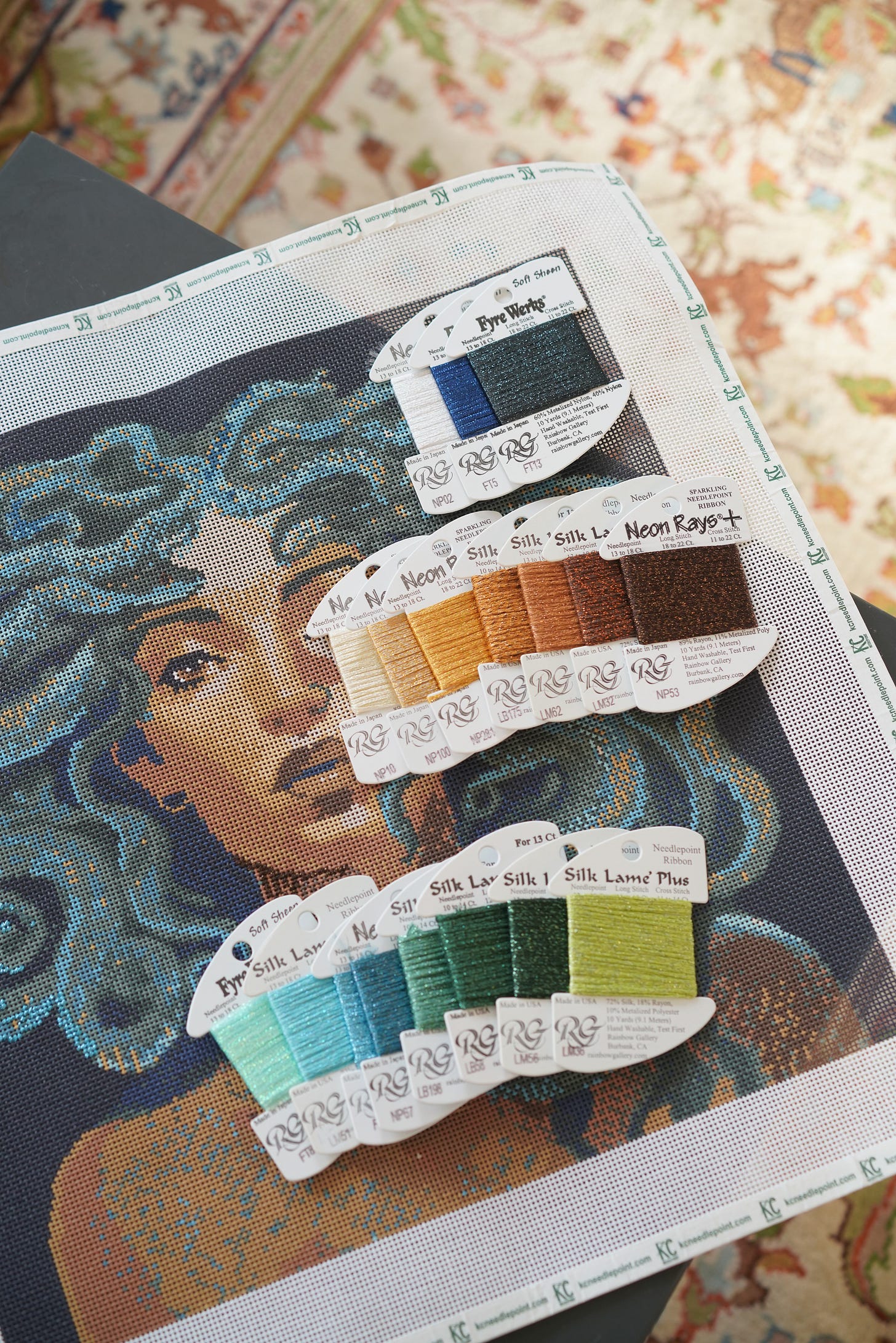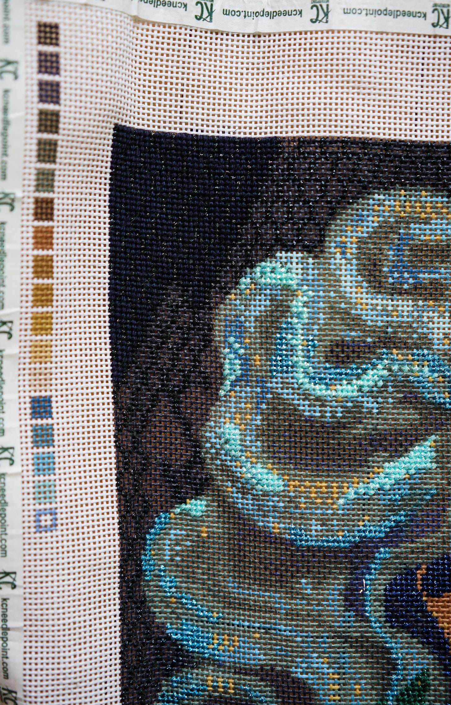 I’m still swirling on what this canvas means to me, but I can tell you that it’s altered my brain chemistry. My mornings with Medusa have been sporadic meditations, as I listen to songs and stories. Or stitch in silence.